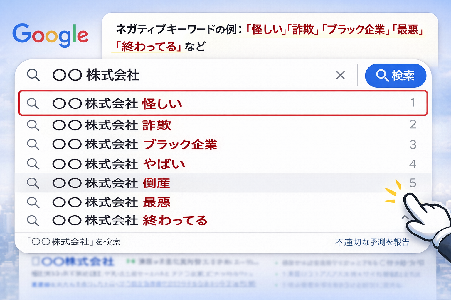 ■「詐欺」「怪しい」などのネガティブワードの表示