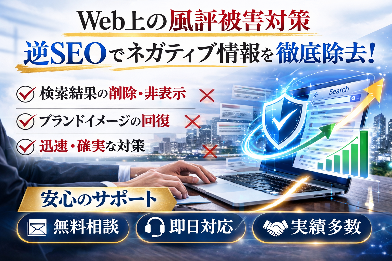 そこで、極力最短で効果的に風評被害に対処できるのが、逆SEO対策です!