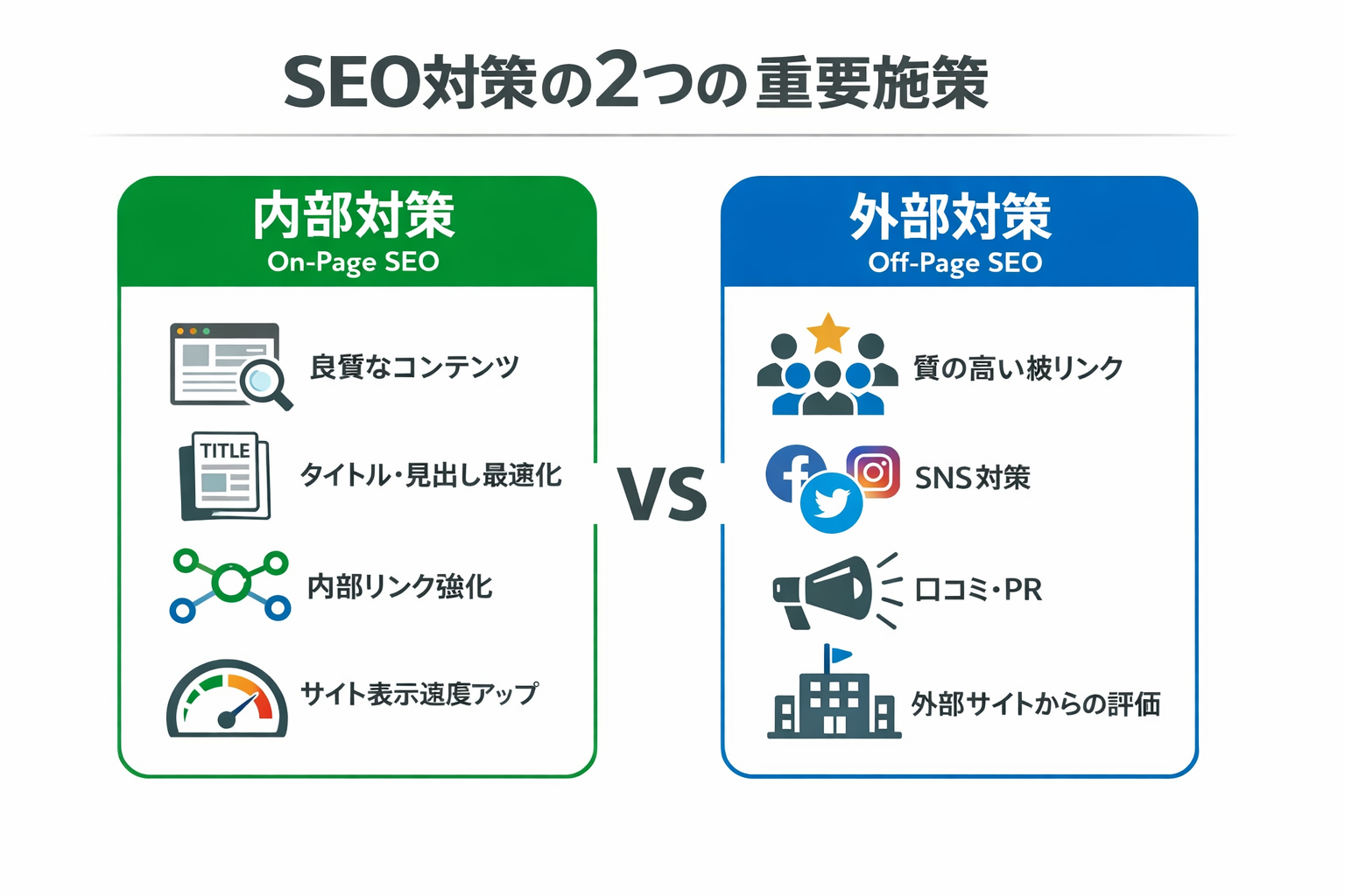 そして、SEOにとって大切なのが、「内部対策」と「外部対策」ですね。